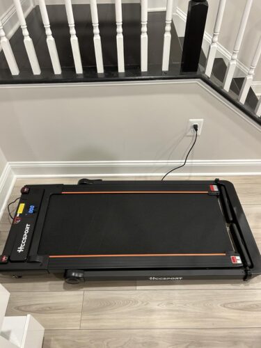 This has to be the most underrated folding treadmill out there. My hunt for a folding treadmill started about a month ago when I was approaching my 65th birthday. Needing to keep active but not having the room for full size treadmill and needed to find something to fold up and slide under the bed when needed. The number of brands and models were confusing to sort through and the ratings were all over the scale. I tried 2 different models from another brand with more features, app and tracking, but they felt cheap and not comfortable to use so back they went. Knowing that If I settled with the shortcoming's they either wouldn't last or I would quit using it because I wasn't really satisfied with it from the start. Being frustrated with the whole process I was second guessing the plan of a portable treadmill and considered other indoor exercise options. But not having room for exercise equipment I was frustrated. By chance while watching hundreds of review videos on these weird named treadmills I came across one mentioning the Hccsport and It seemed like it had good reviews with the negative reviews being mostly shipping related or setup errors. Digging deeper this one seemed like a winner, but why wasn't it talked about more, not popular like the other brands everybody is promoting? So I ordered it and when I received and set it up I was impressed. Everything I disliked about the other two I tried were solved. It was sturdy, I didn't feel like I was walking on a mushy unstable surface, The flip up handle height is adjustable, the add on tray table is helpful for a laptop and stable enough to actually use. It's quiet and with a 3hp motor I don't think I will have problems with it burning up due to being underpowered like the other 2.5hp models I had.