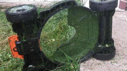 YOU WILL ALSO NEED TO USES GLOVES OR A BRUSH TO GET THE GRASS AT THE BOTTOM, JUST LIKE A GAS PWOERED ONE YOU WILL ACCUMULATE GRASS UNDER THE TRIMMER AND YOU WILL HAVE TO STOP AND MAKE A CLEAN JUST TO BE SAFE AND NOT TO OVERHEAT THE UNIT.