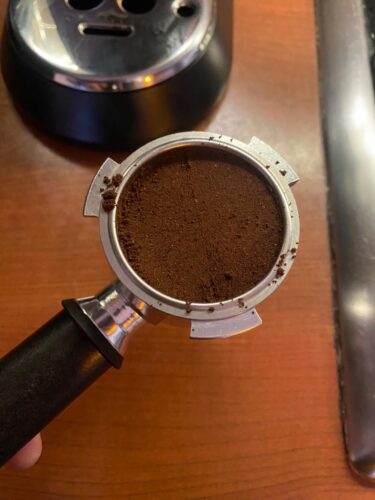 con caffè macinato a 28 secondi fa fatica ad erogare il caffè. Si nota che ne esce un filo, molto amaro, tempo di erogazione molto lungo anche sopra i 25 secondi; ciò perché il tempo di erogazione oltre a dipendere dalla quantità di acqua impostata nella macchina che deve versare nella tazzina dipende anche in quanto tempo quella stessa acqua riesce a penetrare la polvere di caffè prima di cadere nella tazzina stessa e quindi anche dalla potenza della macchina oltre che dalla quantità di buchi e della larghezza degli stessi buchi presenti nel gruppo (che è il portafiltro che impugniamo per mettere e togliere le dosi di caffé. Oltre alla manopola è composto del contenitore in cui metteremo il Portafiltro che ospita il caffé macinato e pressato) ed il modo in cui pressiamo il caffè nel gruppo stesso.
