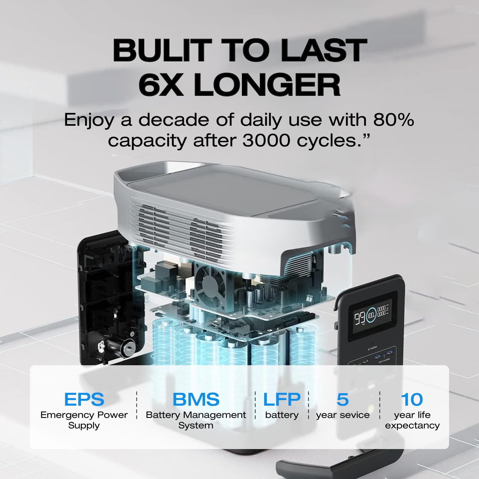 • Expandable Capacity: Stack up to two DELTA 2 Smart Batteries (1 024 Wh each) for up to 3 072 Wh total.