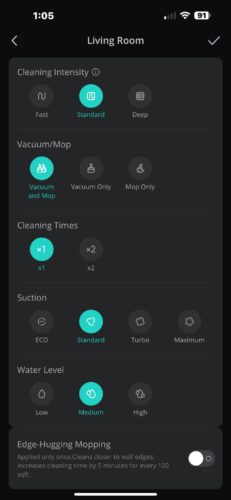 Eufy App: the app needs improvement and could stand to be a little bit more intuitive. You cannot have permanent zones which is something I’d like to see in the future and there are also a lot of ads and other things not necessarily related to the robot itself that can be annoying.