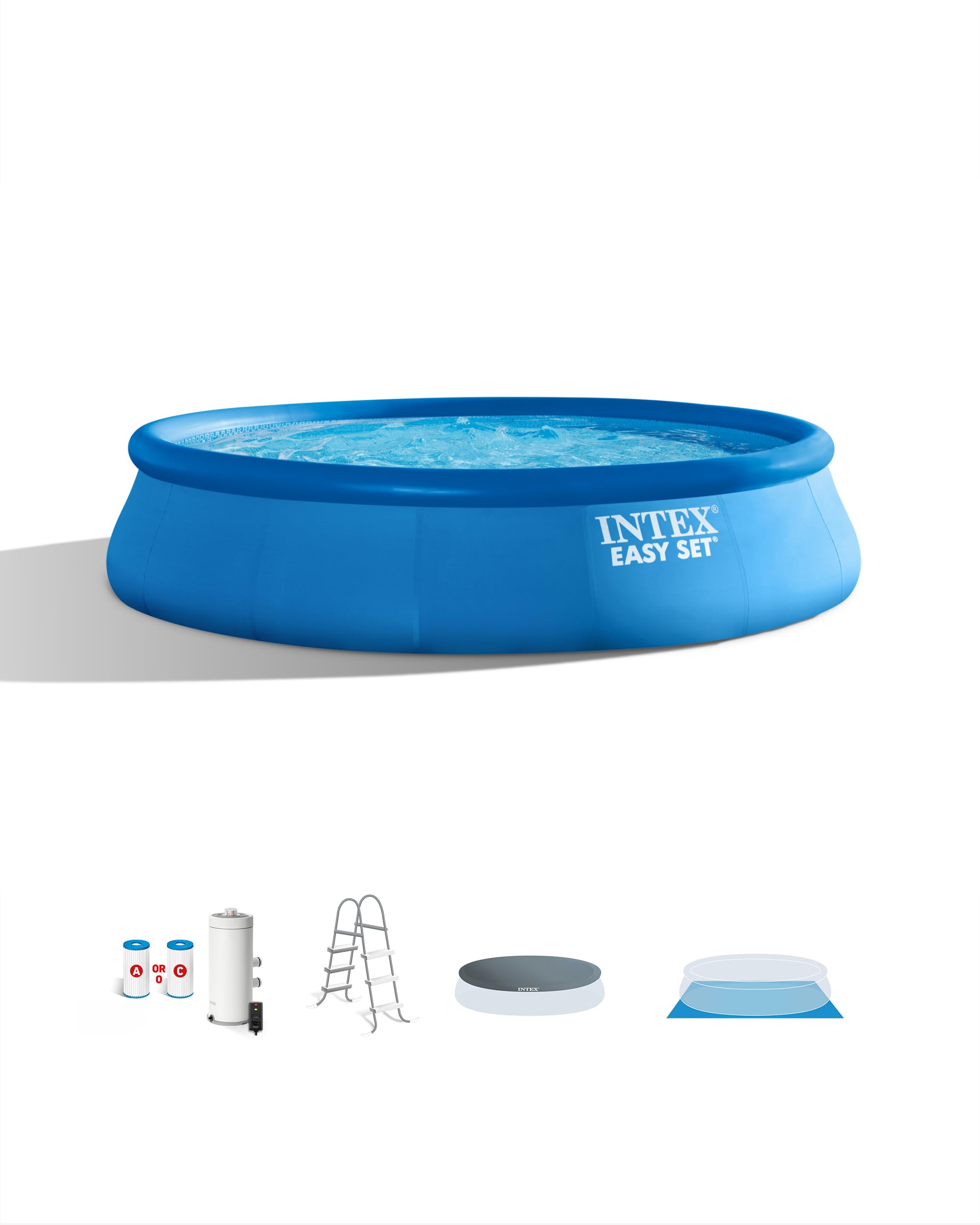 - Complete Set: Includes the inflatable pool, cartridge filter pump, ladder, ground cloth, and pool cover