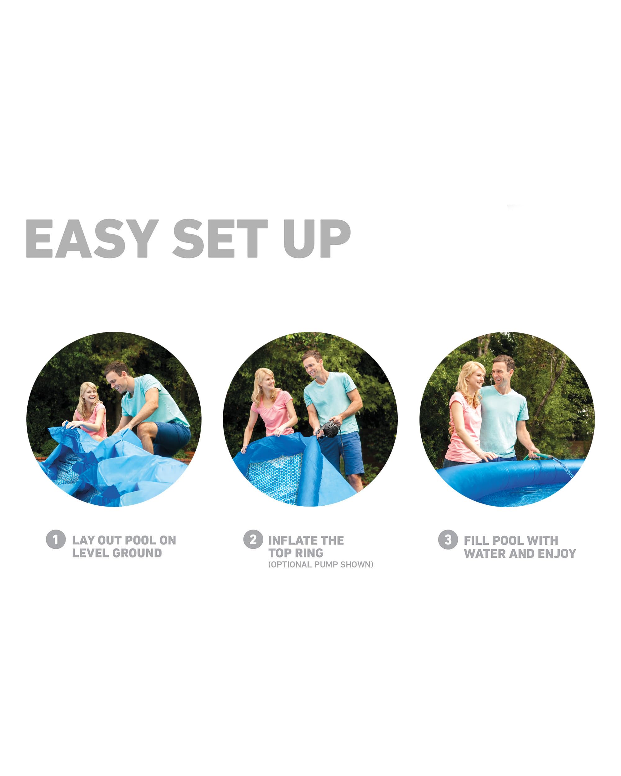 - Quick Setup: Ready for water in just 15 minutes – simply inflate the top ring and fill the pool