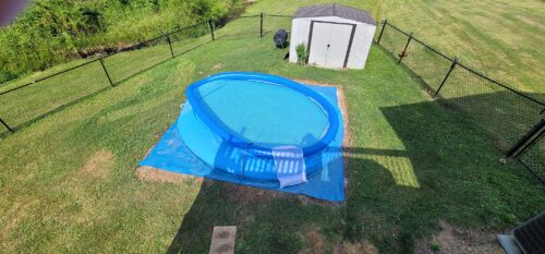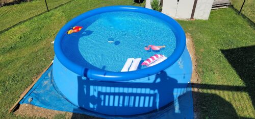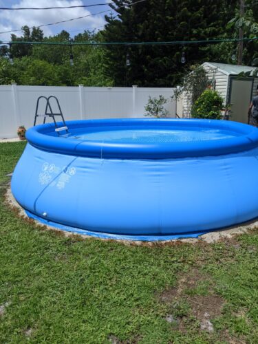 I’m sharing pictures of the pool when it’s level and filled. You’ll also see a photo of my 5’2” son standing beside the pool when it’s all set up. The pump works pretty good too. Despite the stress and effort, it was worth it in the end. When set up correctly, it’s definitely an enjoyable pool!