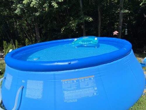 Also make sure to purchase the cover for this pool it acts as a solar panel and heats the water up quite nicely and also keeps stuff out of the pool. We think it is totally worth the price