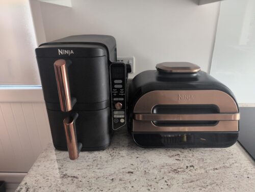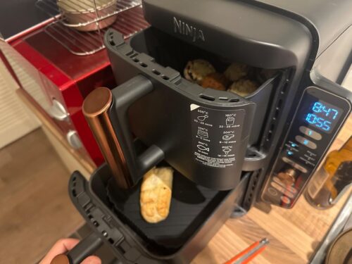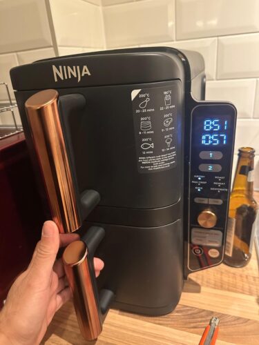 NB: there seems to be a few negative comments on this air fryer, mainly from the US, where they have 120v mains, whereas in the UK we have 240v mains. It seems when using both compartments in the US their mains power cannot cope with that and so the air fryer under performs and stuff can be unevenly cooked. We do not seem to have this problem in the UK.