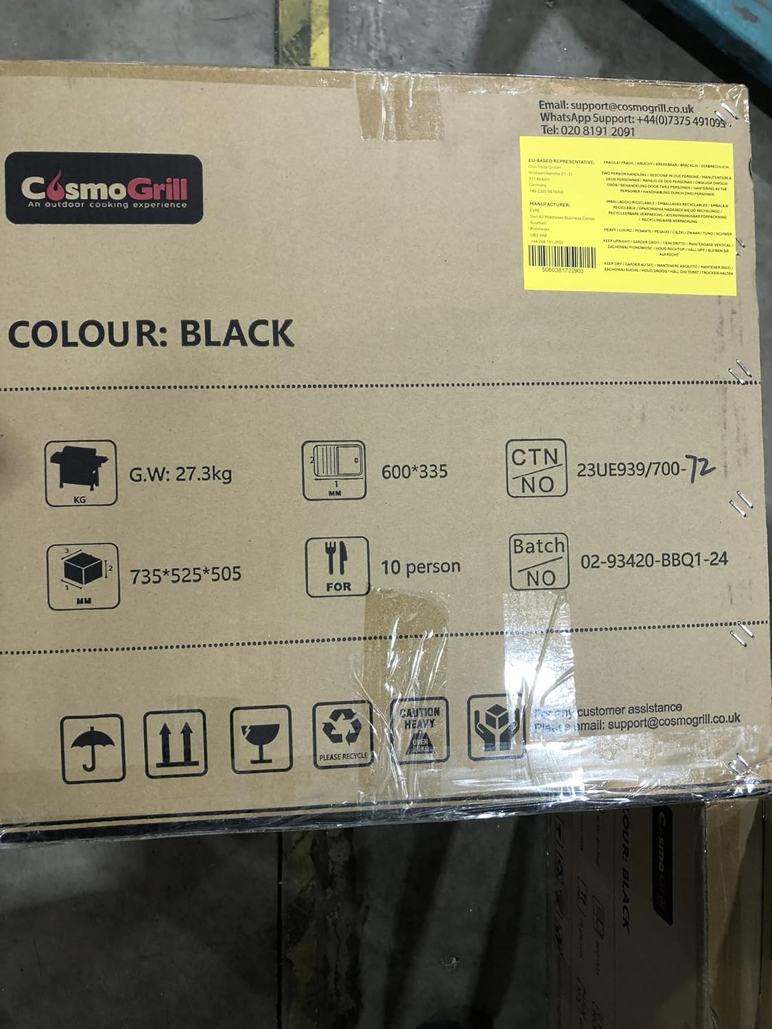 The barbecue is very good but the customer service even better. When put together there was a problem with a screw sheath. After sending pictures the supplier responded really quickly and sent out a whole new section which arrived within a couple of days and sorted the problem.
