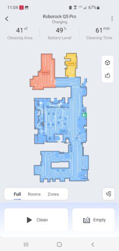 This is part of our basement which is generally dark with zero lights on; the iRobot S9 would normally give up as it requires some amount of light to perform its job; Roborock Q5 Pro+ will happily start and run in pitch black which affords us the flexibility to run in off hours when the family has gone to bed.