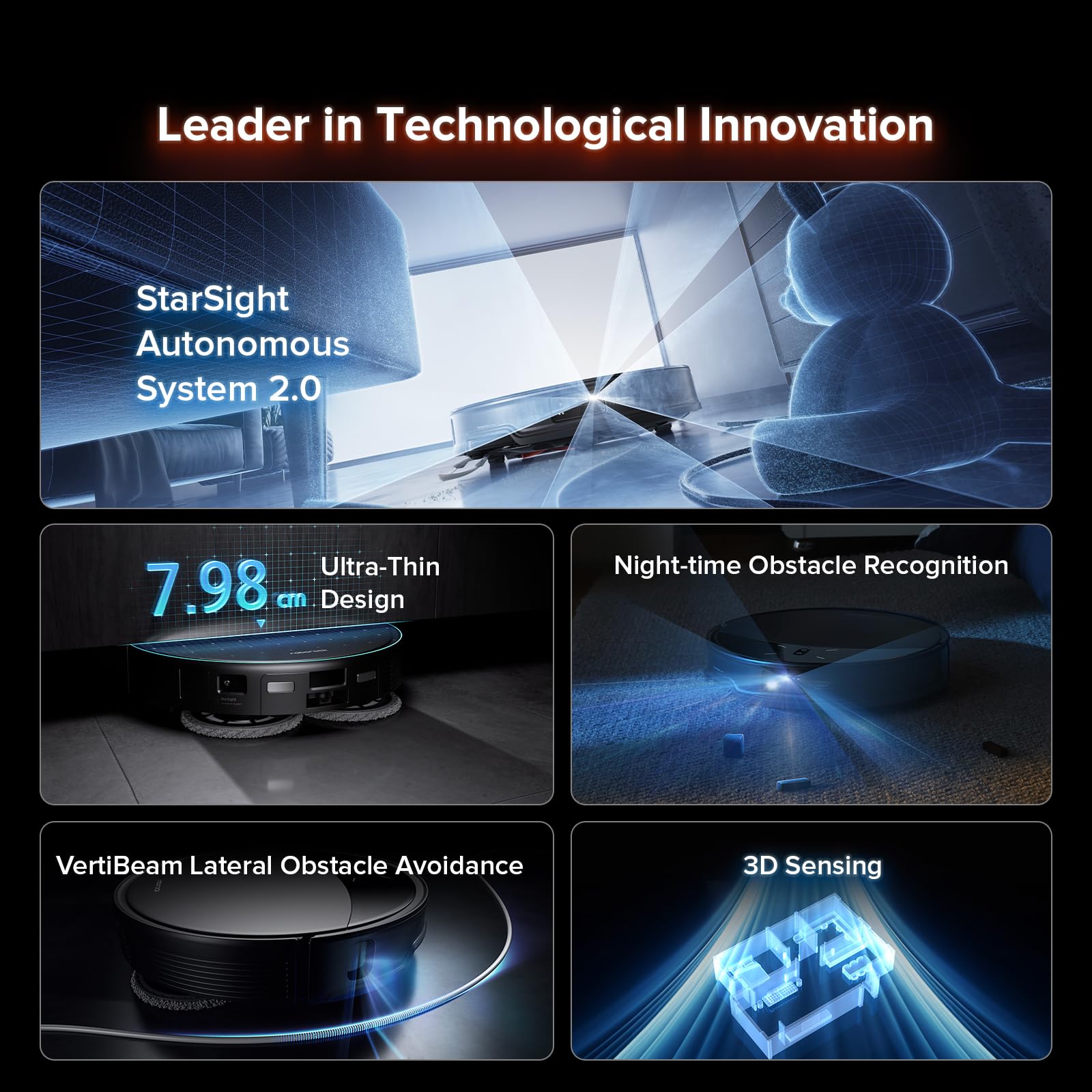 • Self-Emptying & Hot Air Drying: Multifunctional Dock 4.0 ensures hands-free operation with 176°F mop cleaning and 60-day auto-dust collection.