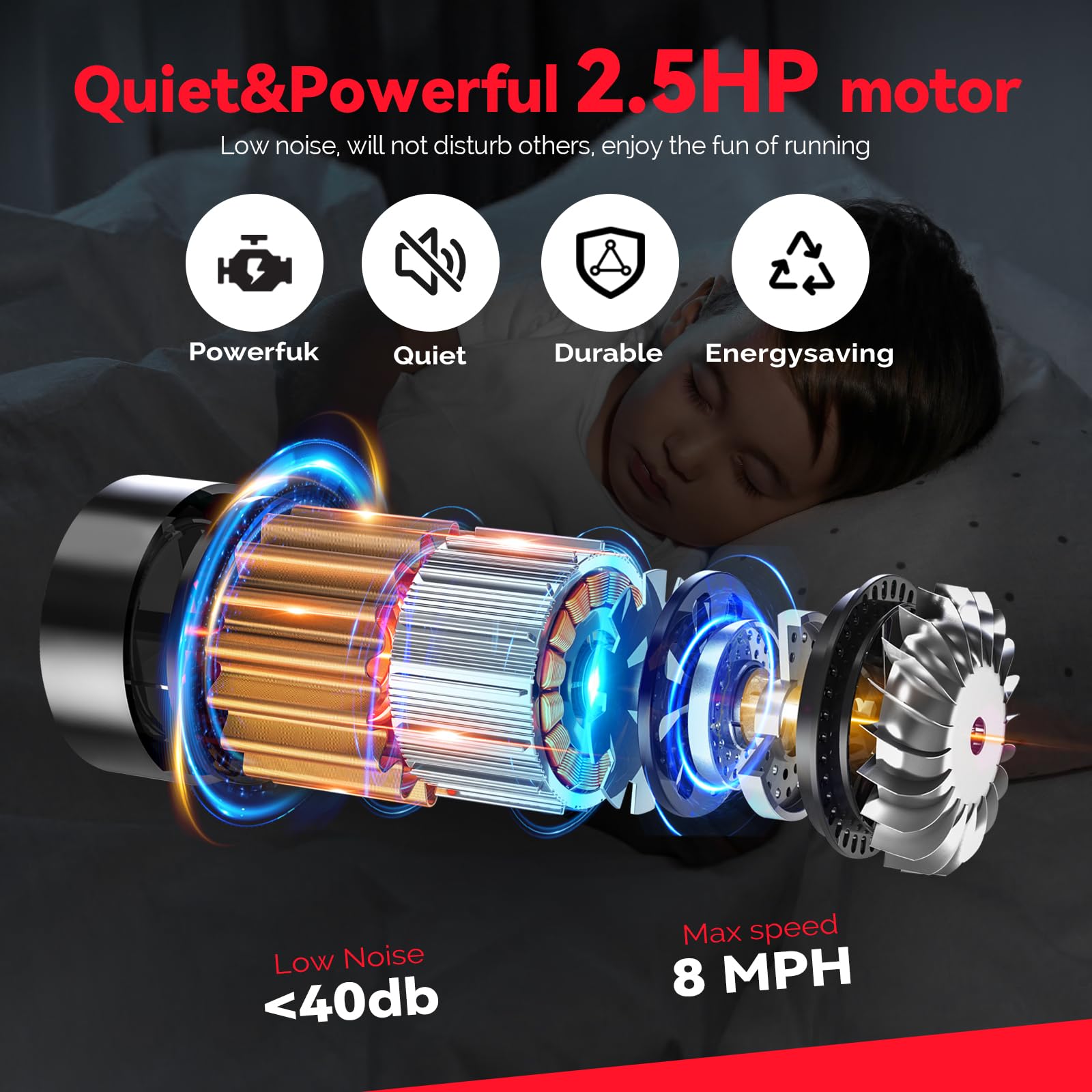 - Smart Control – LED display tracks speed, time, distance, and calories; adjust speed and incline instantly with included remote or mobile app.
