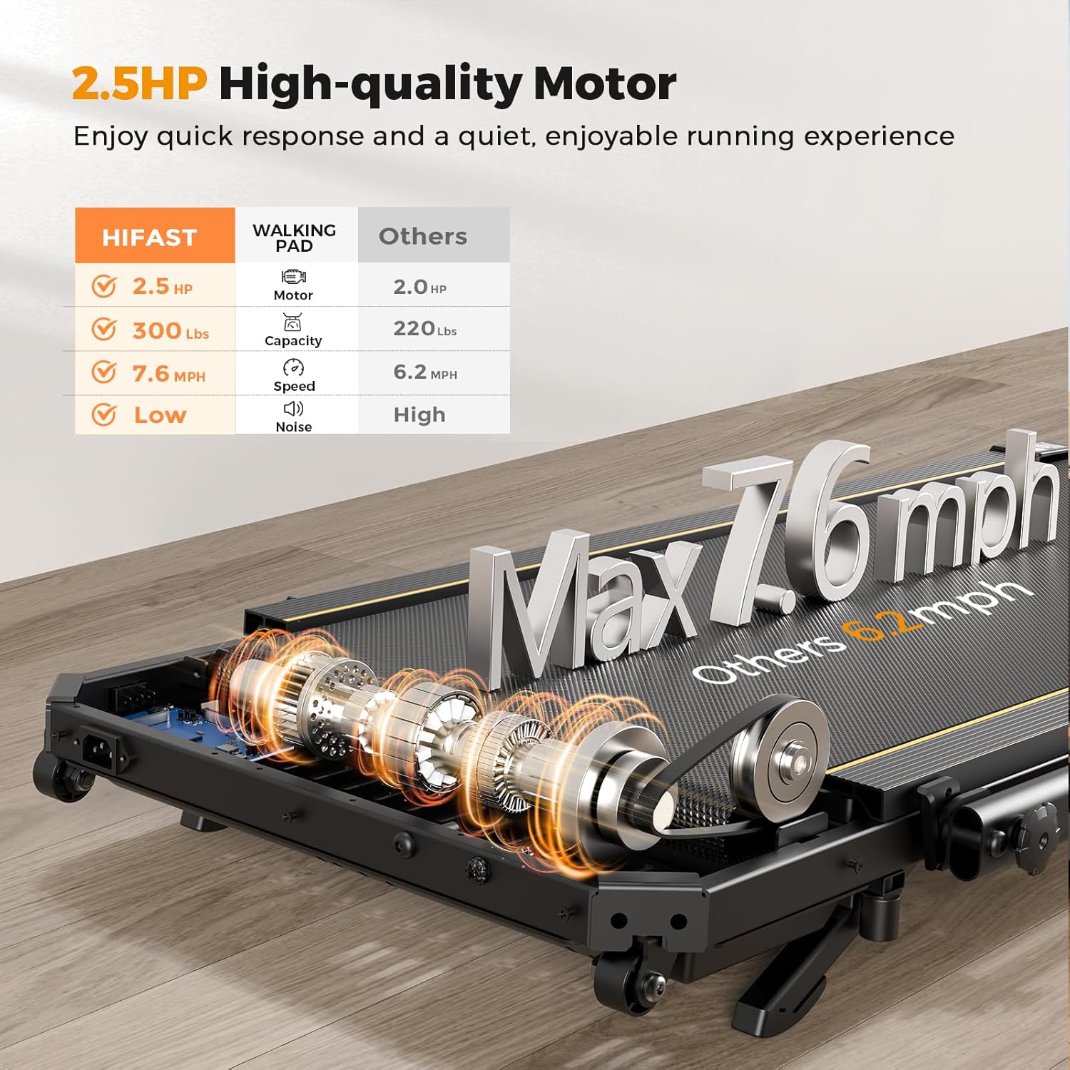- Dual-Mode Speed – 0.6–3.8 MPH walking (folded) and 3.8–7.6 MPH running (unfolded).