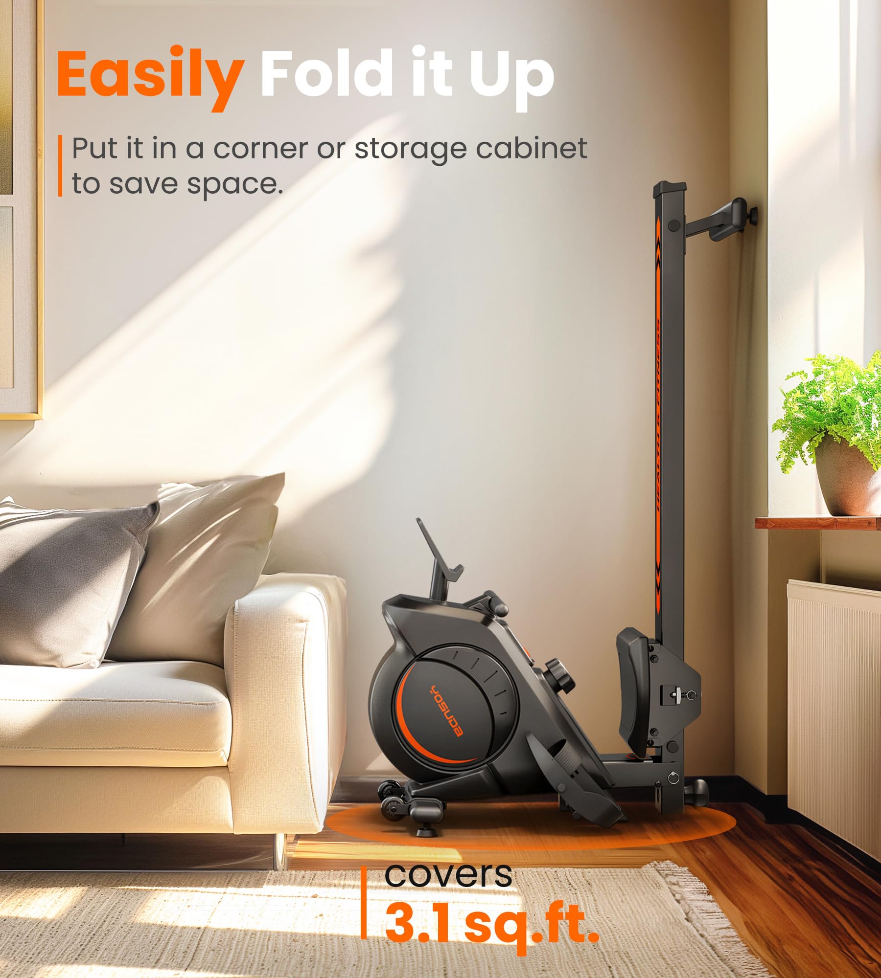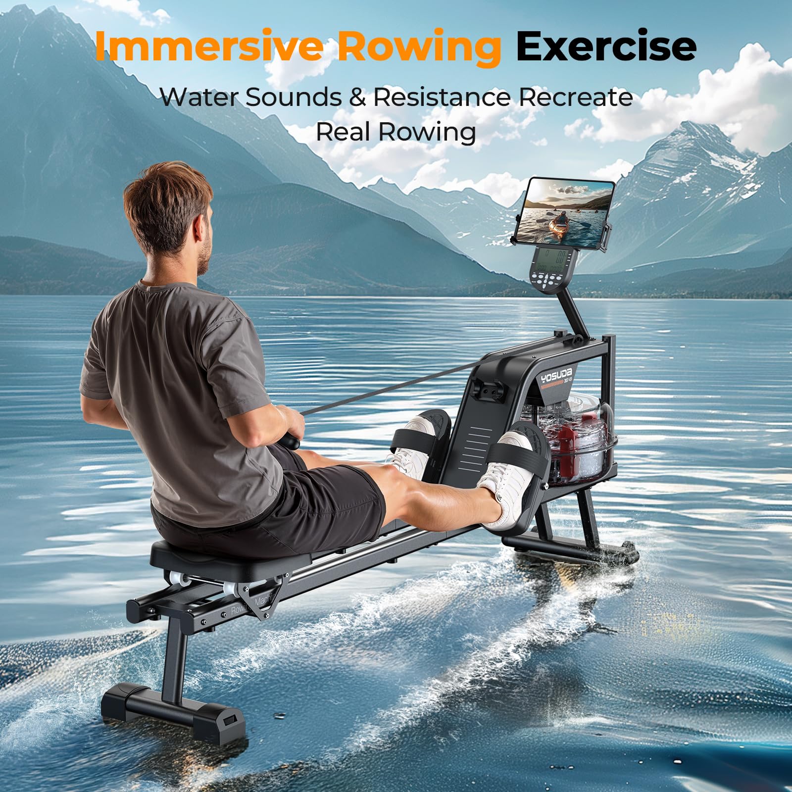 YOSUDA Magnetic & Water Rowing Machine – Foldable Home Rower, 159 kg Capacity, Bluetooth App, Tablet Holder & Comfortable Seat